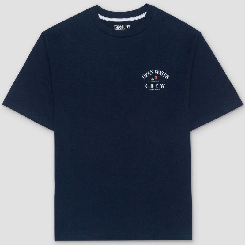 Peanuts Men's Snoopy "Open Water Crew" Short Sleeve Graphic T-Shirt - Navy Blue XXL