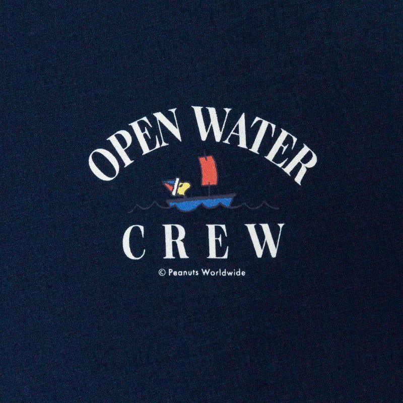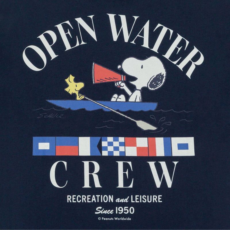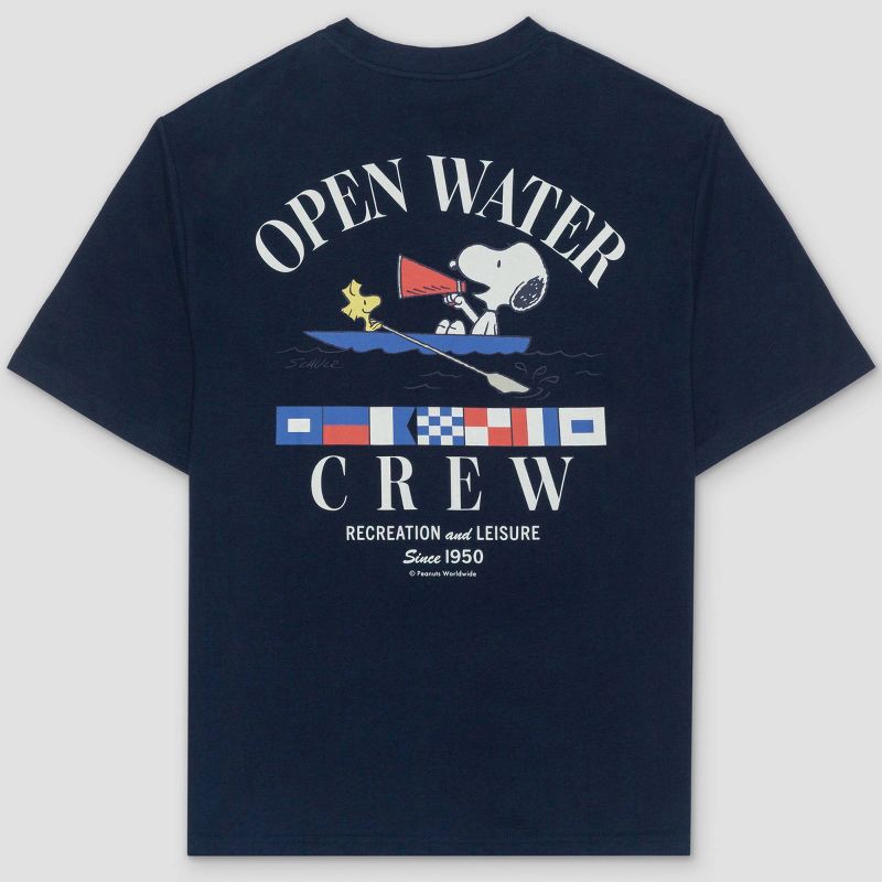 Set sail for the weekend in Joe Cool style wearing this Snoopy "Open Water Crew" Short-Sleeve Graphic T-shirt. This navy blue tee features Snoopy holding a red megaphone and Woodstock in a blue boat w…