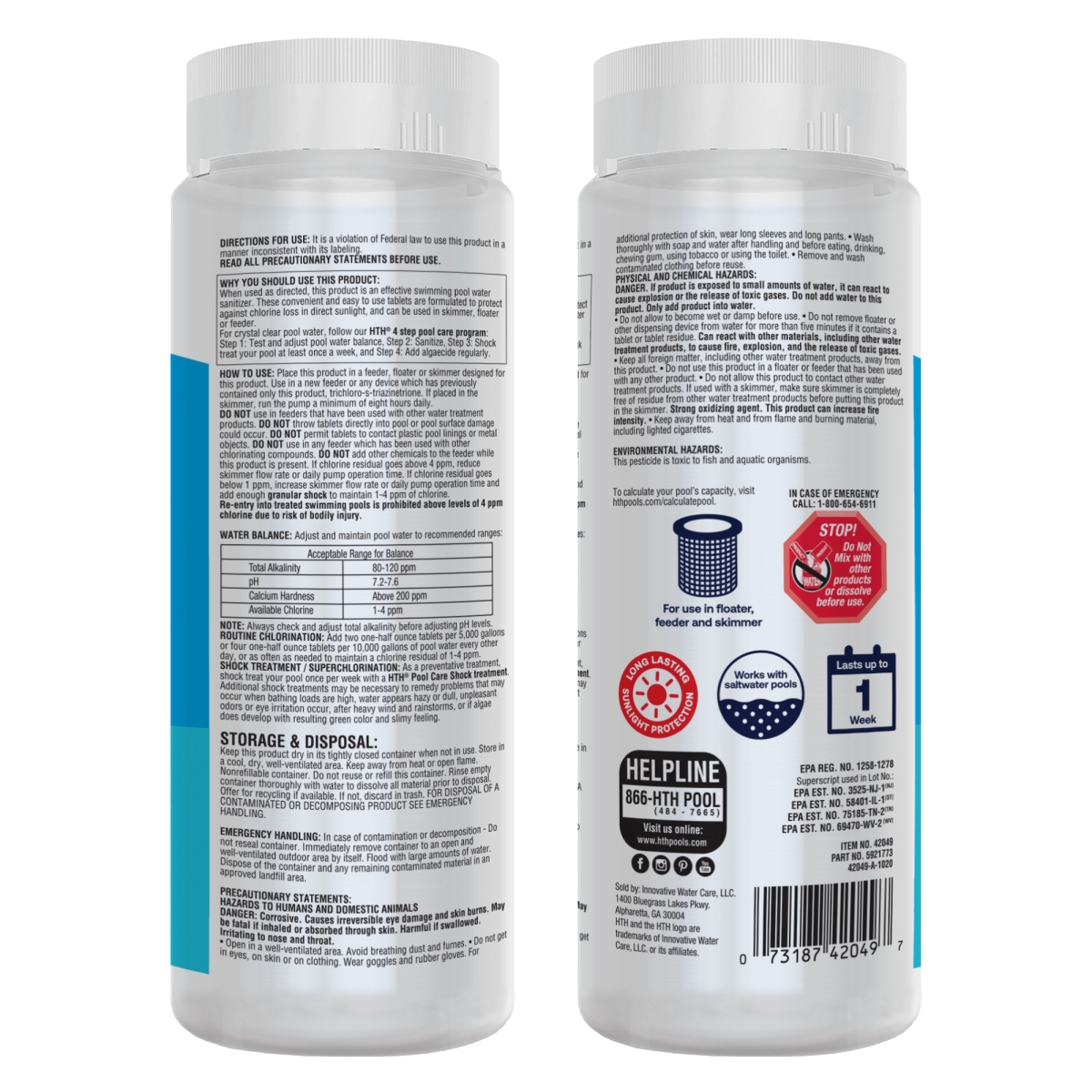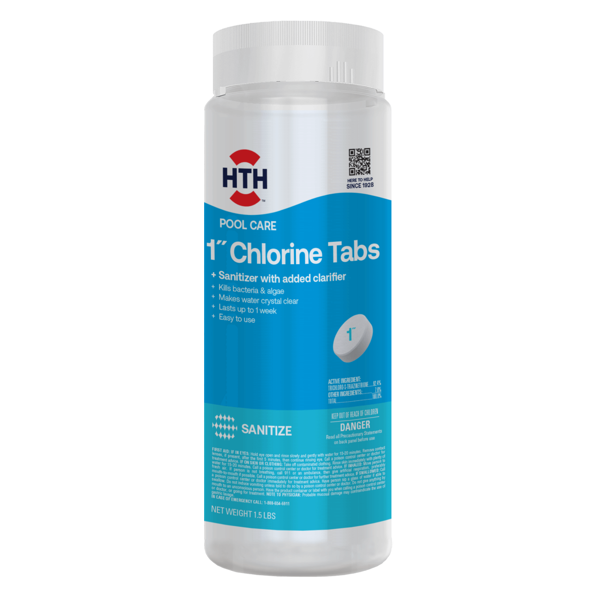 hth Pool Care 1" Chlorine Tabs, Sanitizer, Kills Algae and Bacteria, 1.5 lb