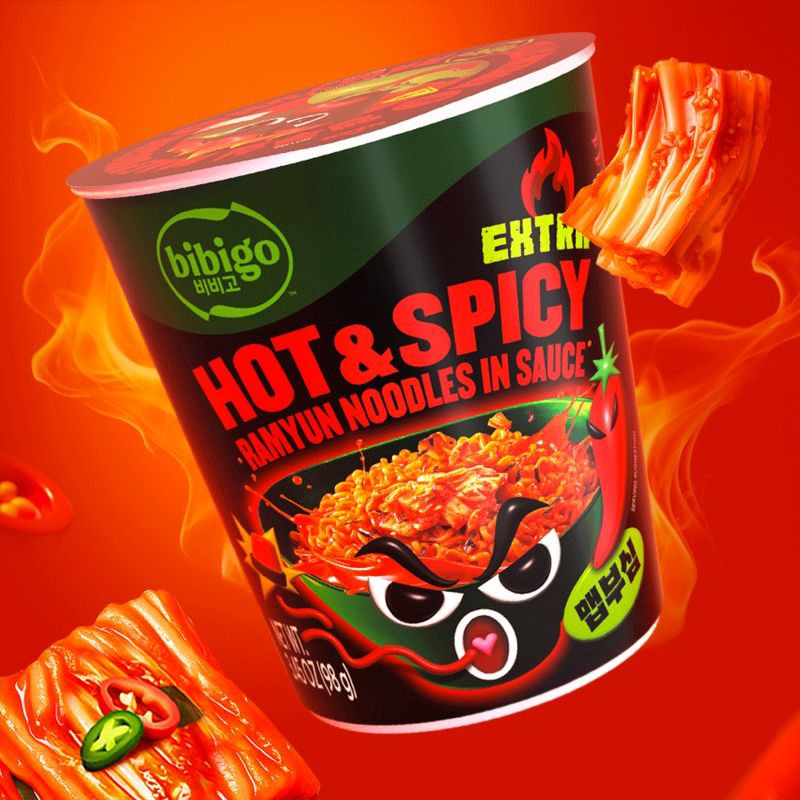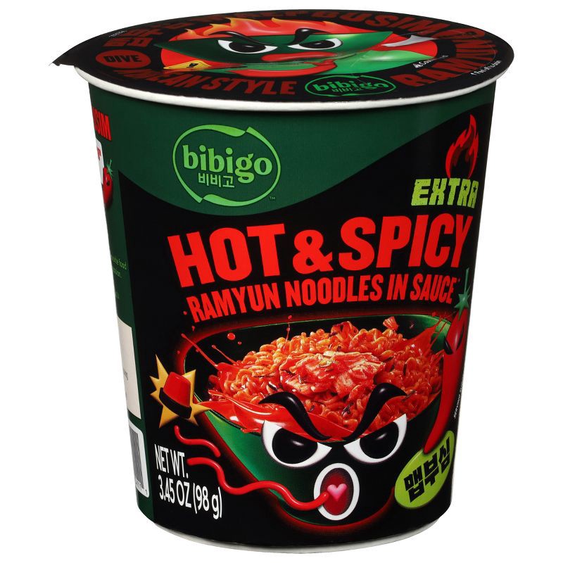 - One 3.45 oz cup of bibigo Extra Hot & Spicy Korean-Style Instant Ramyun Noodles