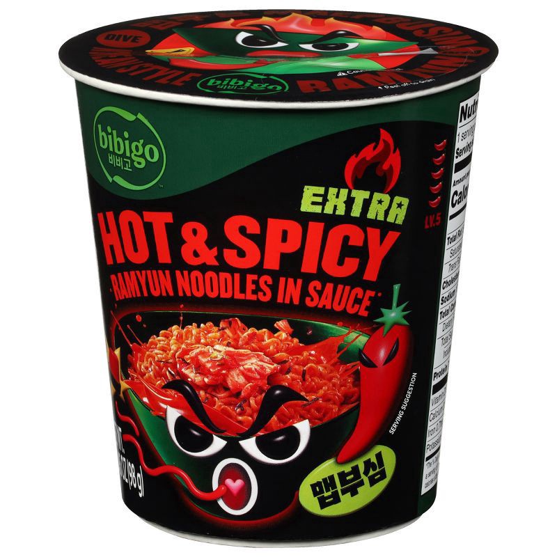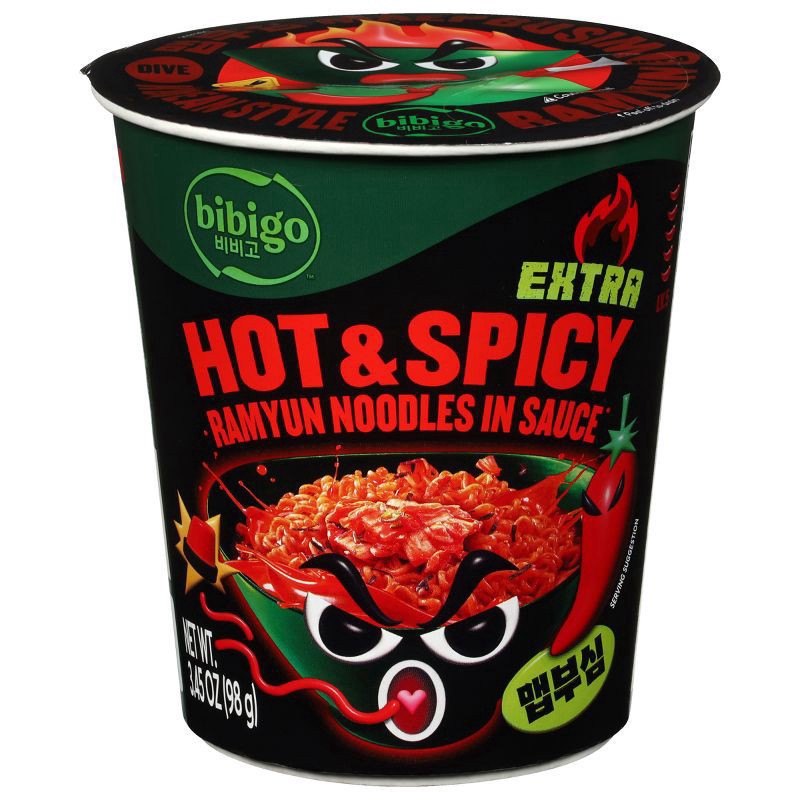 - One 3.45 oz cup of bibigo Extra Hot & Spicy Korean-Style Instant Ramyun Noodles