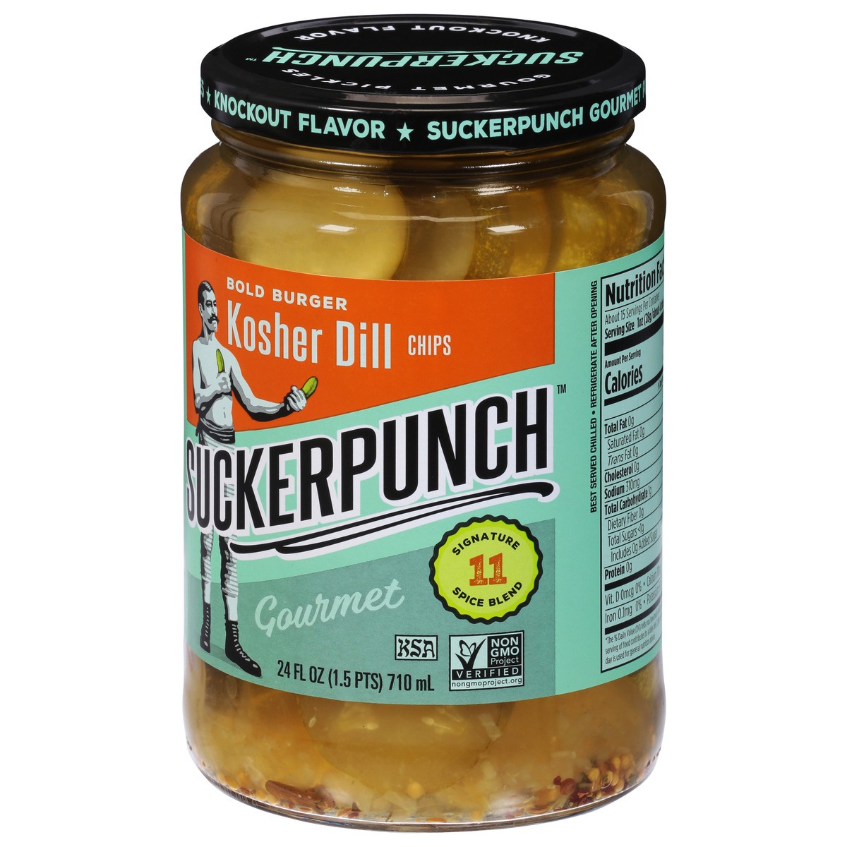 SuckerPunch Bold Burger Kosher Dill Chips Pickles - 24 fl oz
