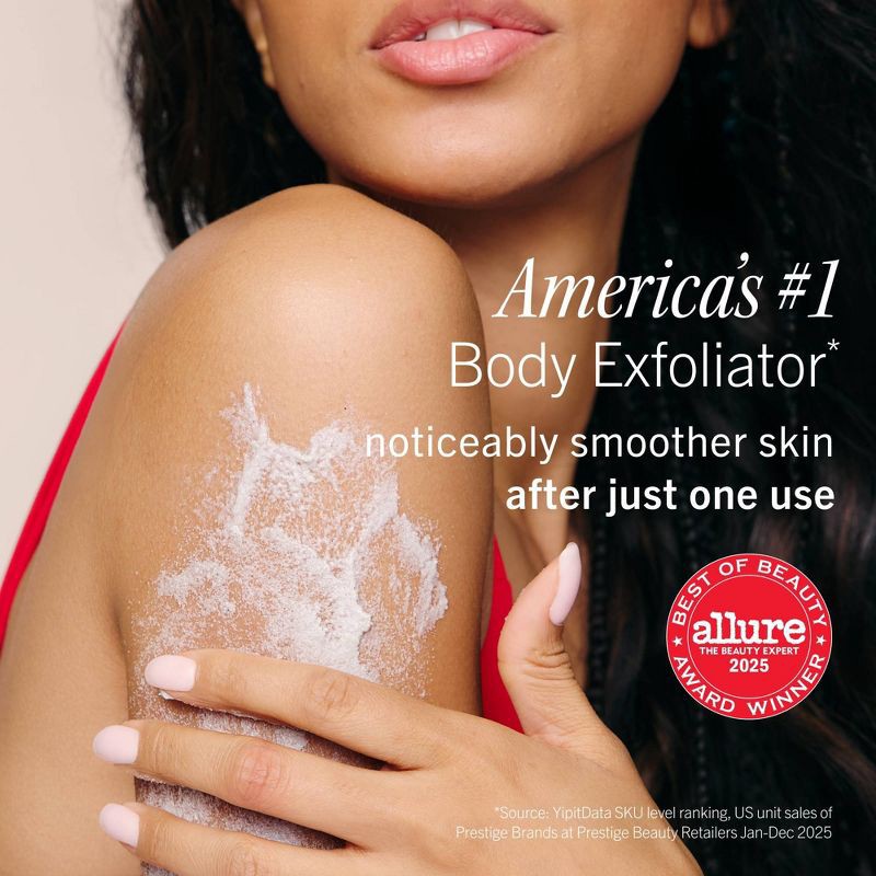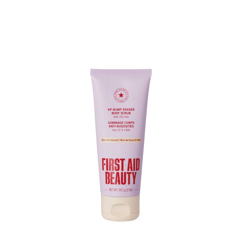 First Aid Beauty's cult-classic body scrub exfoliates away uneven skin texture associated with KP to reveal exceptionally smooth + touchable skin.