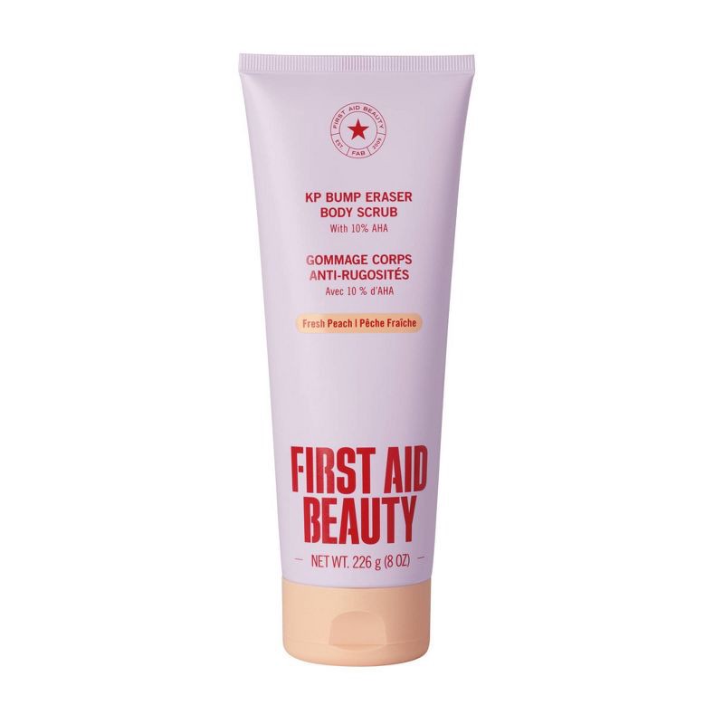First Aid Beauty's cult-classic body scrub exfoliates away uneven skin texture associated with KP to reveal exceptionally smooth + touchable skin.