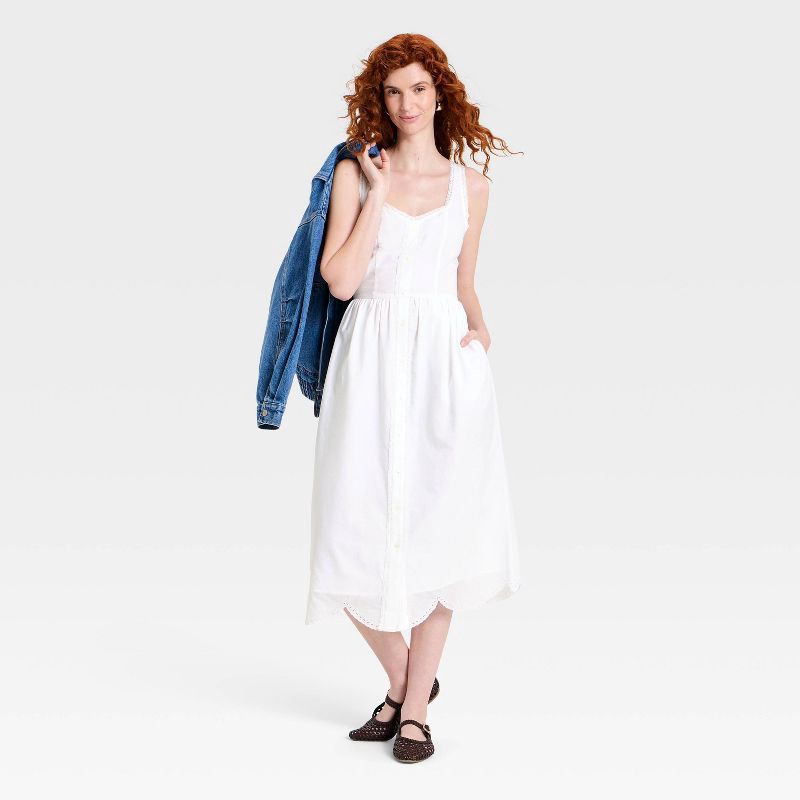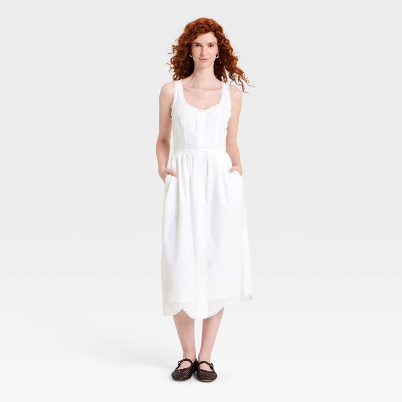 Women's Sleeveless Button-Up Midi A-Line Dress - Universal Thread™ White XL
