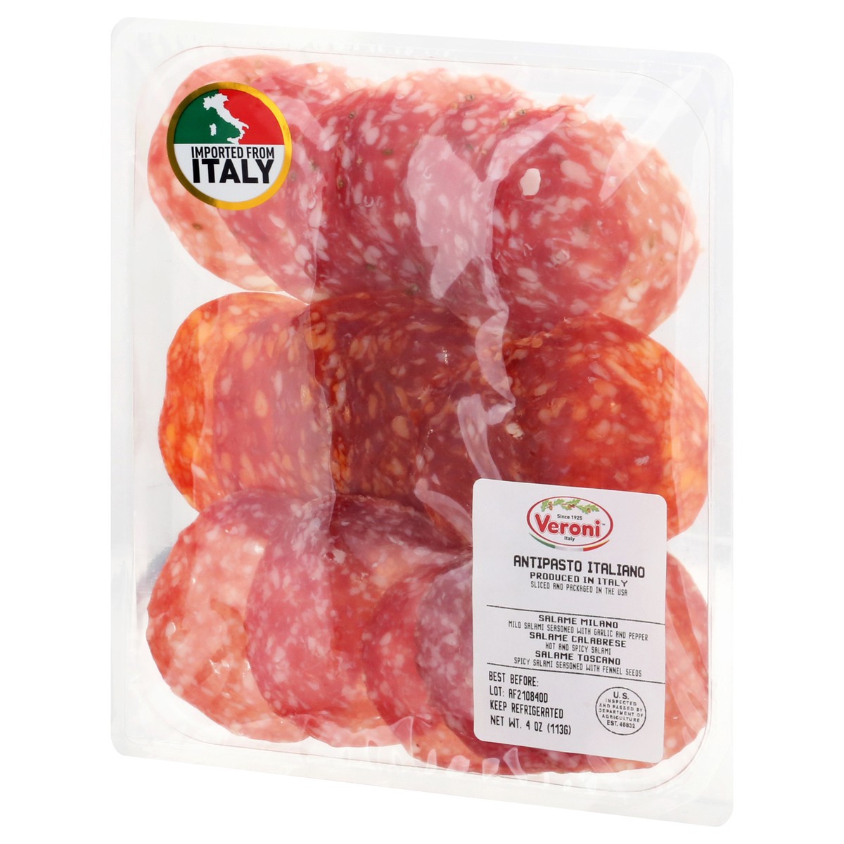 Salame Milano: Mild salami seasoned with garlic and pepper. Salame Calabrese: Hot and spicy salami. Salame Toscano: Spicy salami seasoned with fennel seeds. Since 1925. U.S. inspected and passed by De…