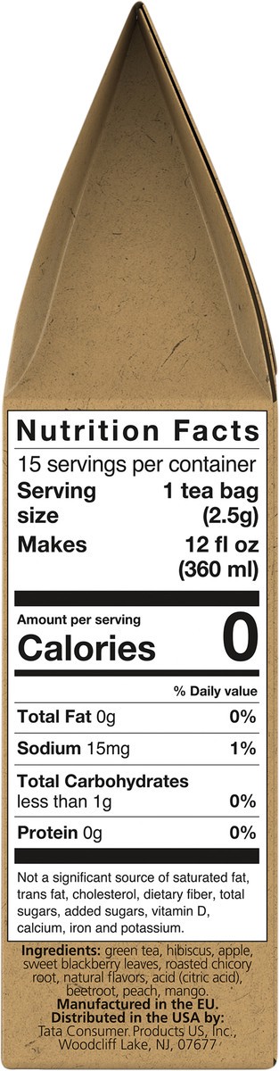 Green Tea, Hibiscus, Apple, Sweet Blackberry Leaves, Roasted Chicory Root, Natural Flavors, Acid (Citric Acid), Beetroot, Peach, Mango.