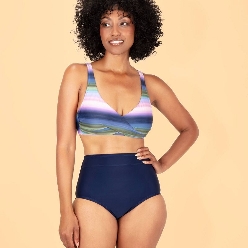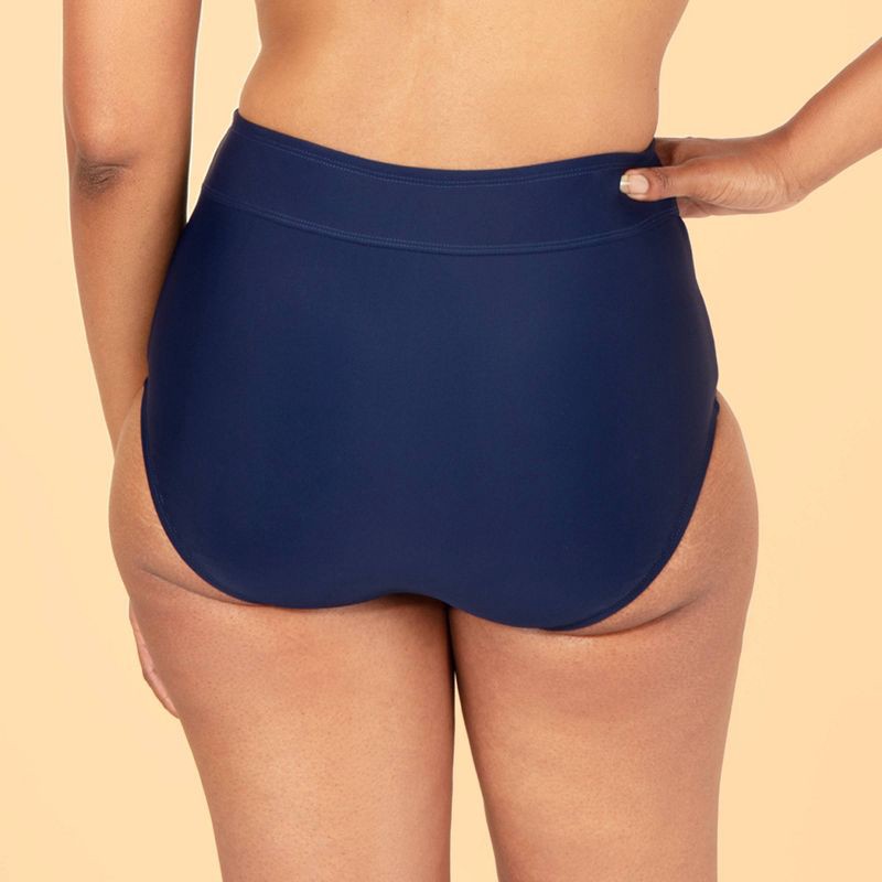 Lands' End Women's UPF High Waist Full Coverage Tummy Control Bikini Bottom - Navy Blue L