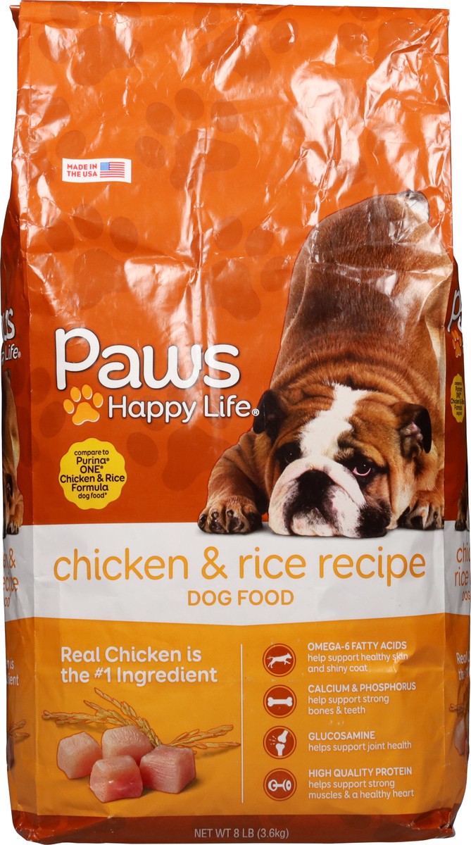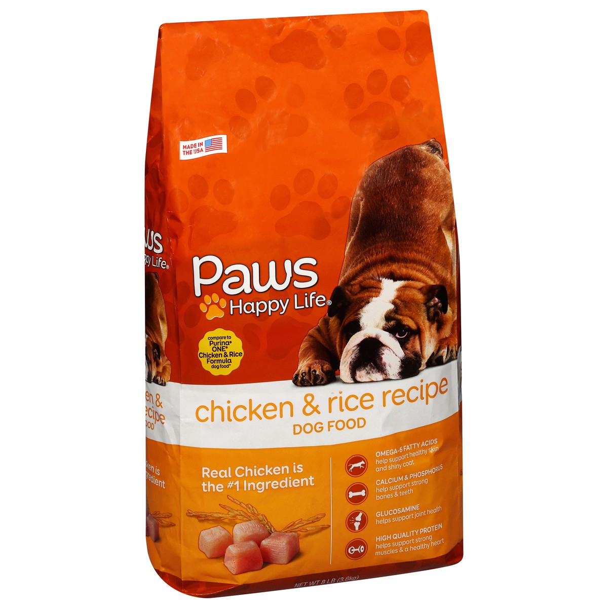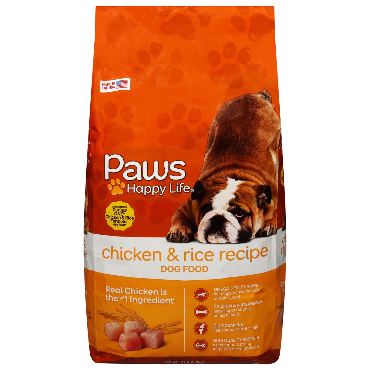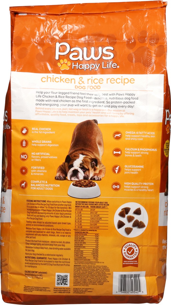 Calorie Content (calculated): Metabolizable Energy (ME) 3,702 kcal/kg; 379 kcal/cup. Nutritional Guarantee: Paws Happy Life Chicken & Rice Recipe Dog Food is formulated to meet the nutritional levels …