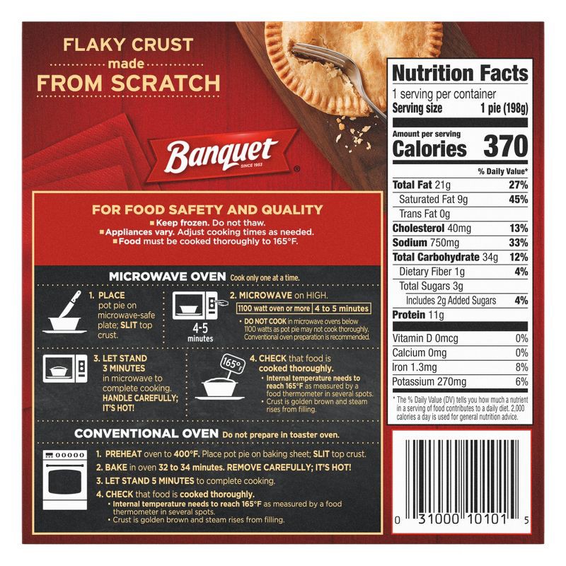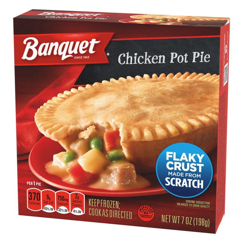 Enjoy a quality comfort food meal that is ready in minutes with a hearty Banquet Chicken Pot Pie. Delight in a hot, quick and easy prepared meal anytime with this deliciously savory frozen chicken pot…