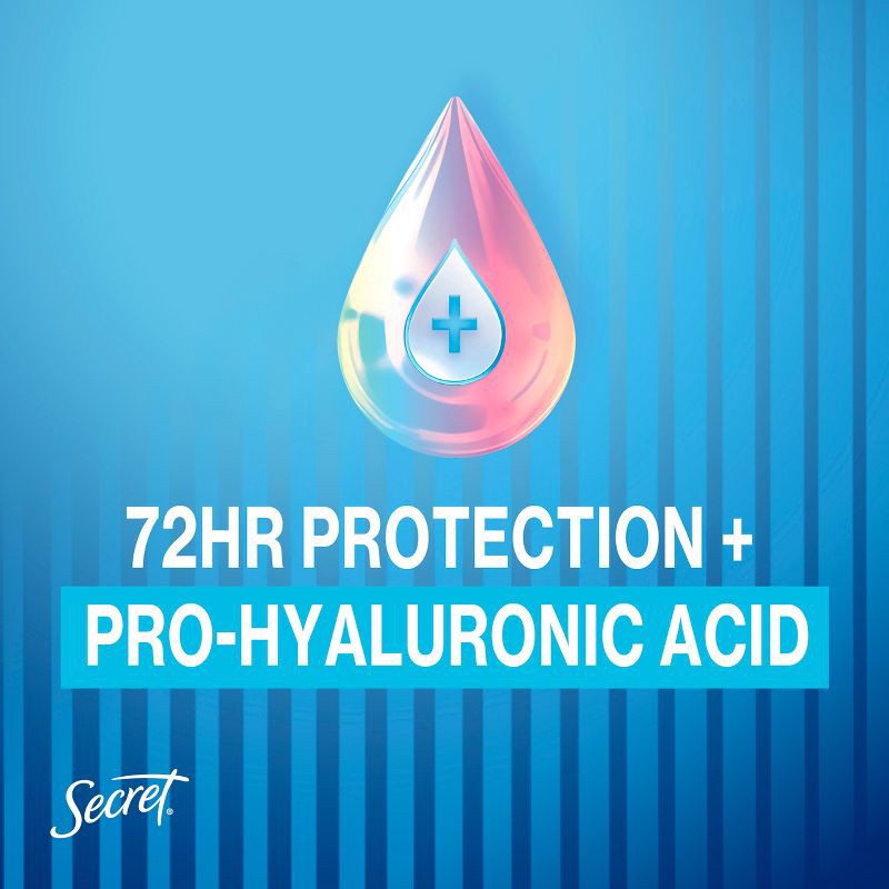 - 72-HR PROTECTION + PRO-HYALURONIC ACID : Go the extra mile while staying fresh and confident. With Secret Outlast Antiperspirant Deodorant for Women