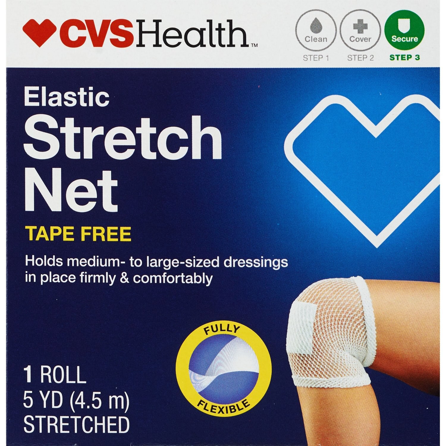 Elastic stretch net. 5 yards stretched. Holds medium to large-sized pads in place. Fully flexible. No tape required. CVS Health quality. Keep medium to large-sized medical pads in place with the CVS H…