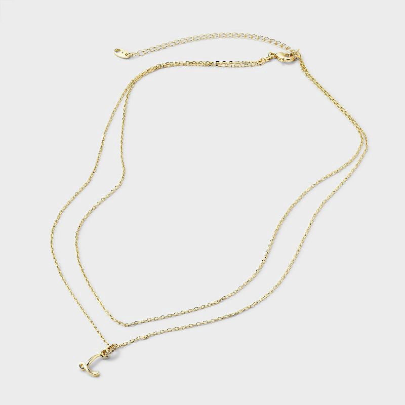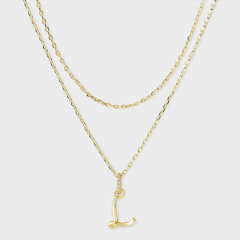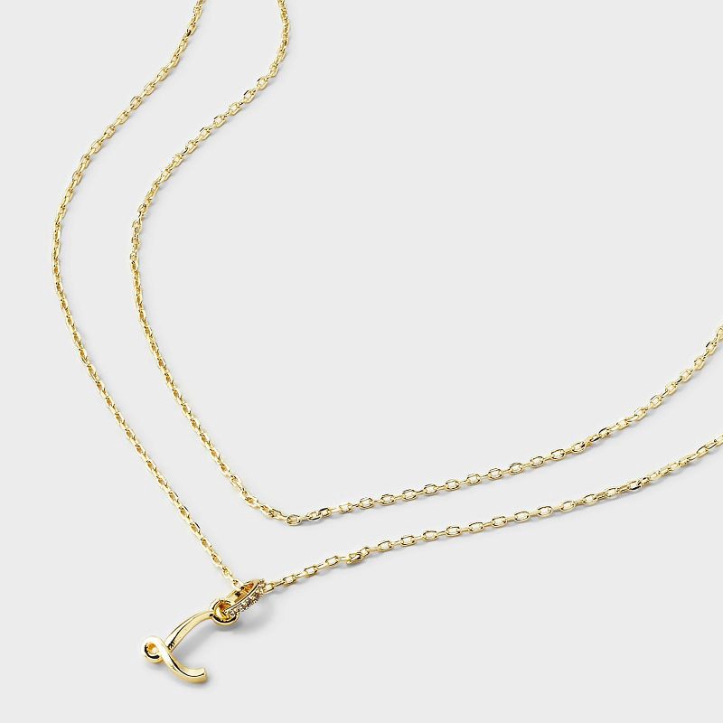 14k Gold Dipped "L" Twist Initial Cubic Zirconia Bail Multi-Strand Necklace - A New Day™ Gold