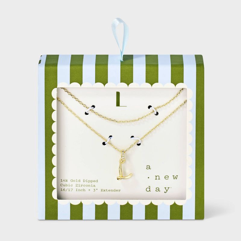 Bring a personalized touch of glam style to your outfits with the 14k Gold-Dipped Twist Initial Cubic Zirconia Bail Multi-Strand Necklace from a New Day™. This necklace features two link-chain strands…