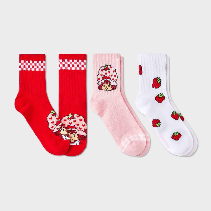 Step out in style with the Women's Strawberry Shortcake 3pk Mid Crew Socks - Pink/Red/White 4-10. Available in assorted colors, these socks feature fun designs from Strawberry Shortcake. Made from a b…