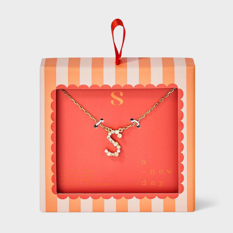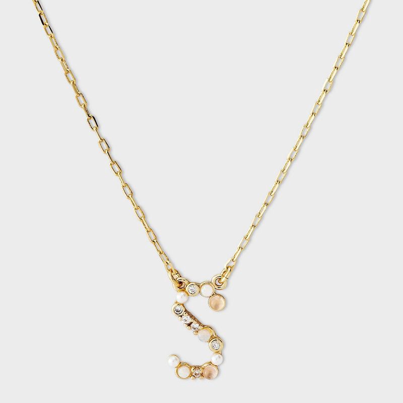 14k Gold Dipped Opal Pearl & Cubic Zirconia Letter "S" Initial Necklace - A New Day™ Gold