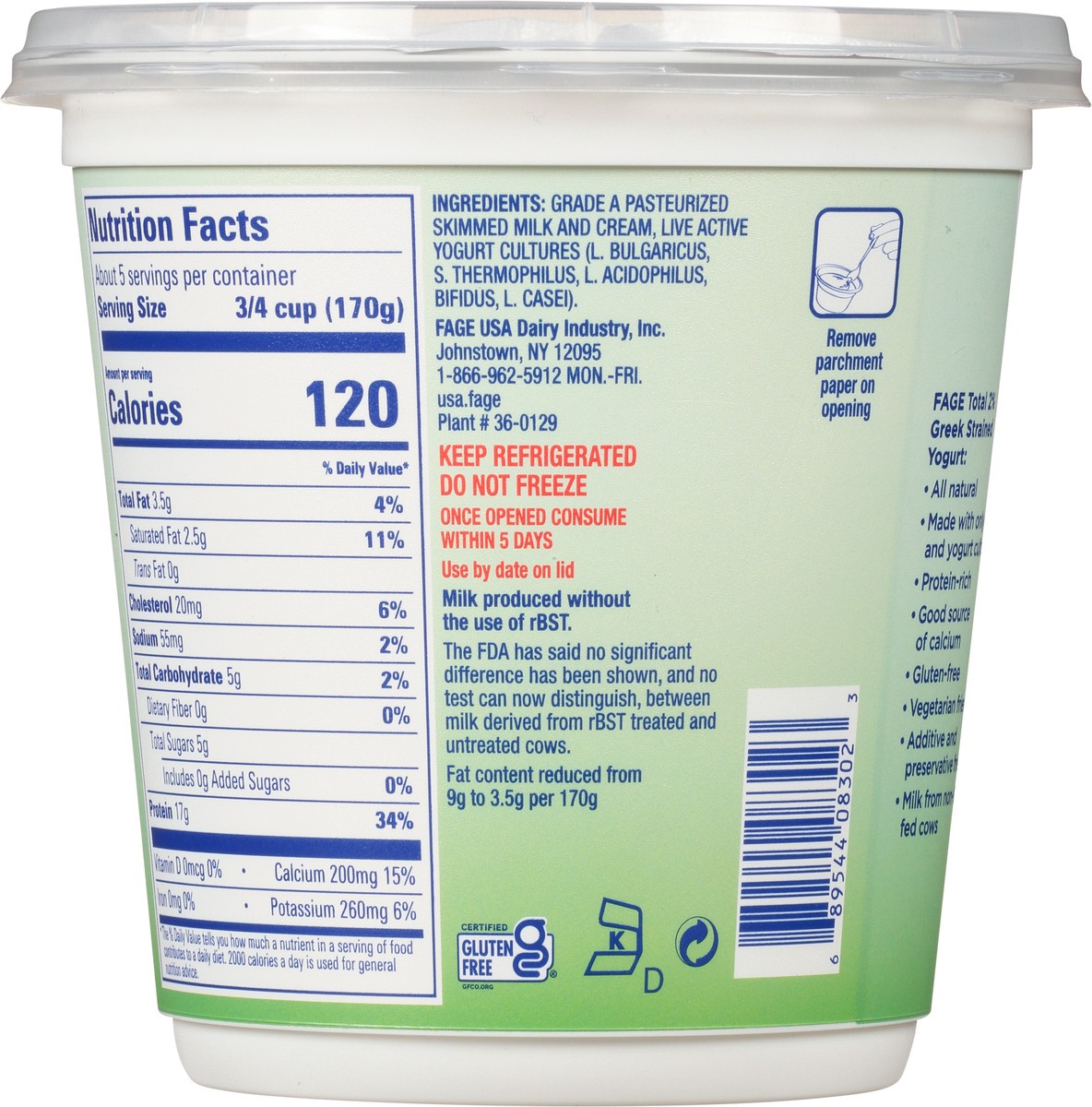 Fage Total 2% Milkfat Plain Greek Yogurt - 32 Oz