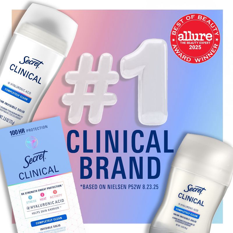 - #1 CLINICAL ANTIPERSPIRANT BRAND* - Secret is recognized as the #1 clinical antiperspirant brand, offering effective solutions for those seeking strong sweat and odor protection while being gentle on skin. *Based off Nielson data as of 12/19/28