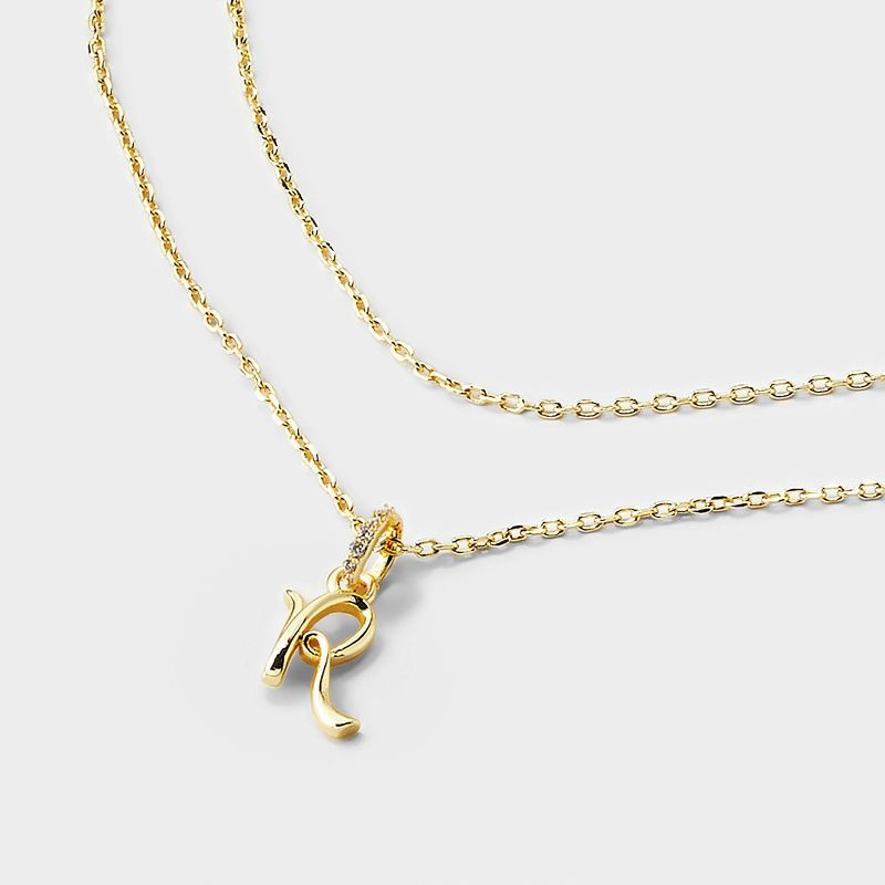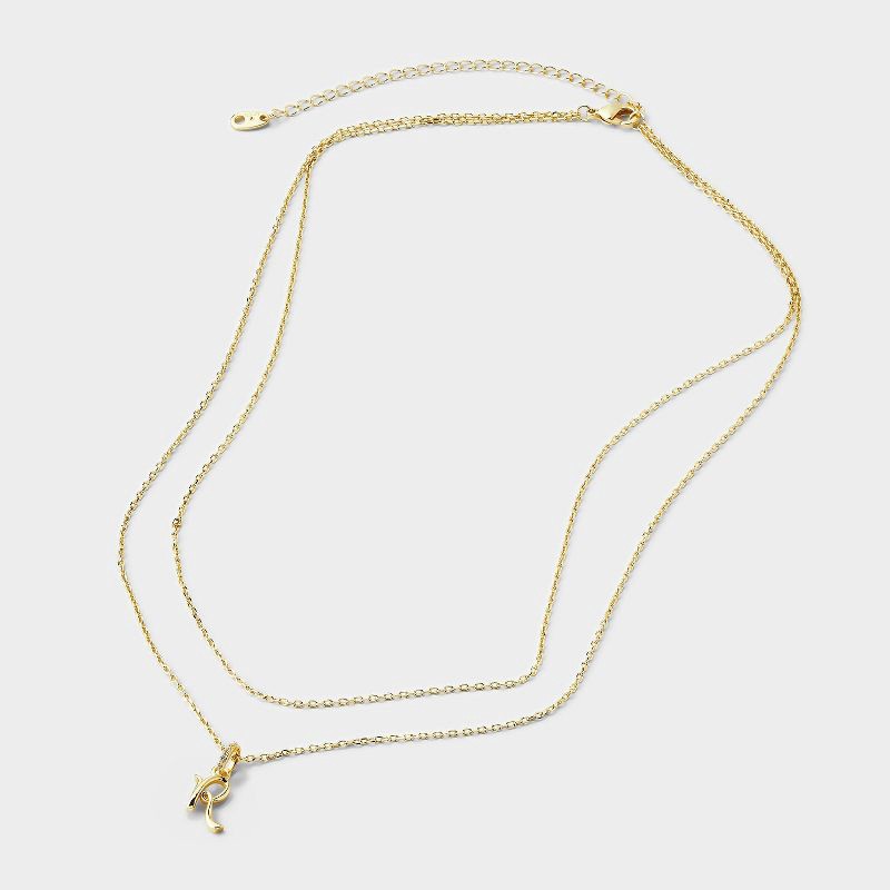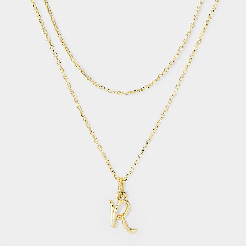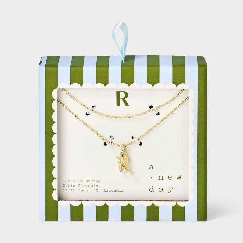 14k Gold Dipped "R" Twist Initial Cubic Zirconia Bail Multi-Strand Necklace - A New Day™ Gold