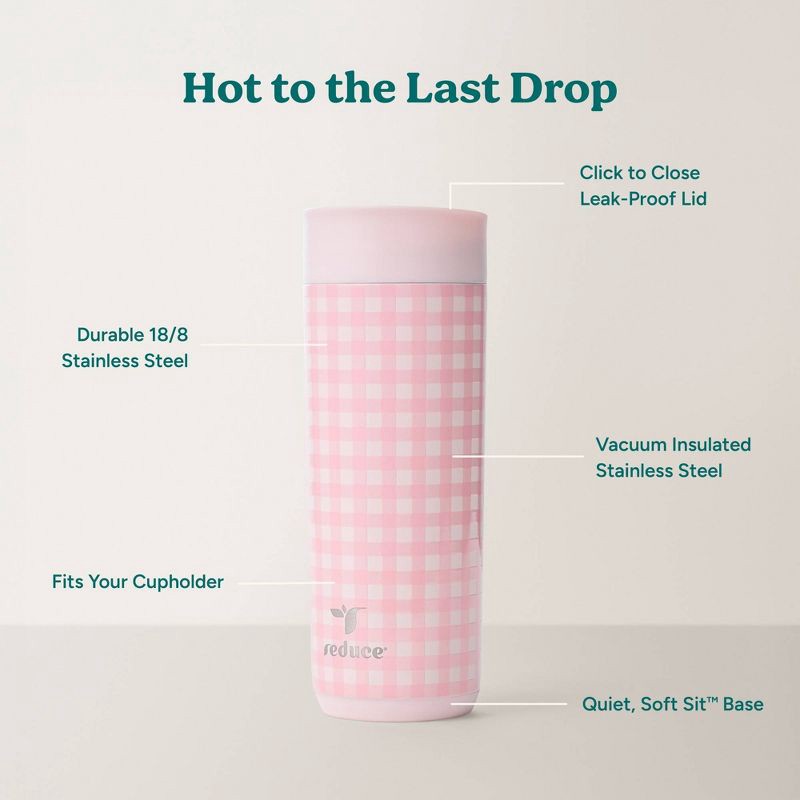 Reduce 16oz Perk Insulated Stainless Steel Leak Proof Coffee Tumbler Blush Gingham