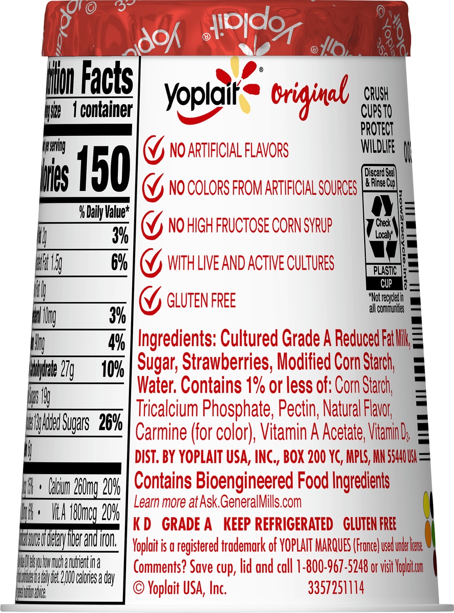 You can't beat an original, especially when it's as smooth, creamy and delicious as Yoplait. Yoplait yogurt is made with real fruit, Gluten Free and has No High Fructose Corn Syrup, No Artificial Flav…