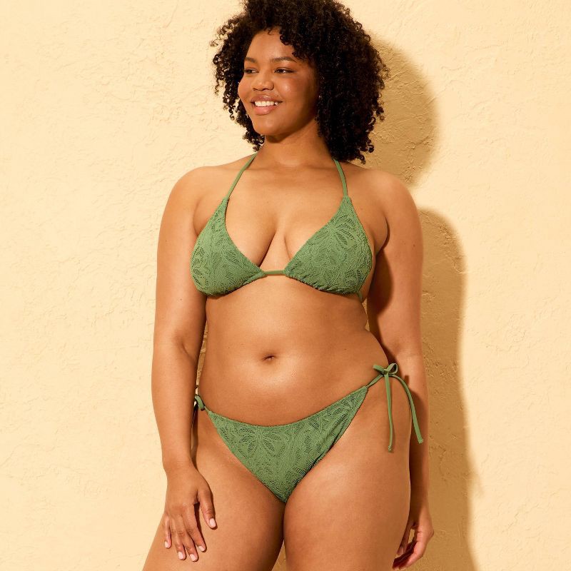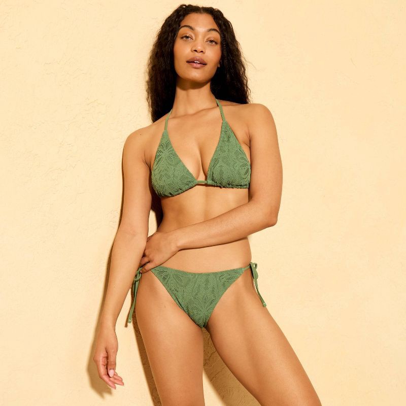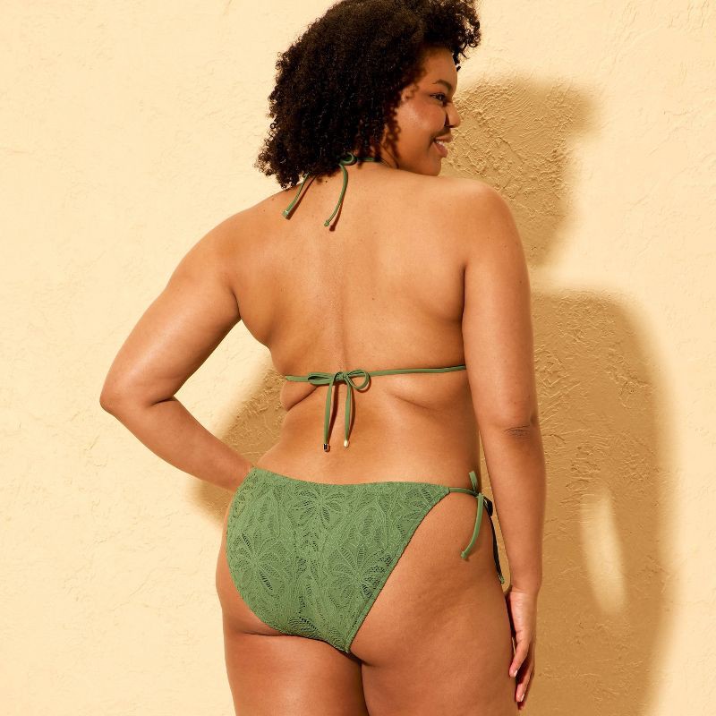 Feel fabulous by the shore wearing this Palm Crochet Side-Tie High-Leg Bikini Bottom from Shade & Shore™. This string bikini bottom showcases a green palm crochet pattern and features adjustable ties …