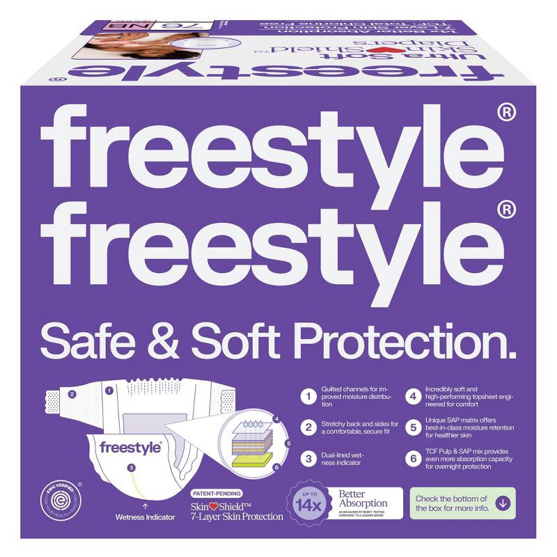 - Up to 14x Better Absorption: Freestyle SkinShield™ diapers offer up to 14x better absorption as measured by rewet testing compared to a leading brand, which means better protection for your baby and less changes for you