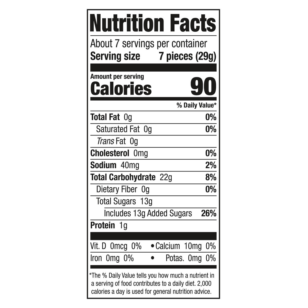 Corn Syrup, Sugar, Water, Gelatin, Modified Corn Starch, Contains 2% or Less of Fumaric Acid, Lactic Acid, Citric Acid, Sodium Citrate, Calcium Lactate, Sodium Lactate, Color Added, Natural and Artifi…