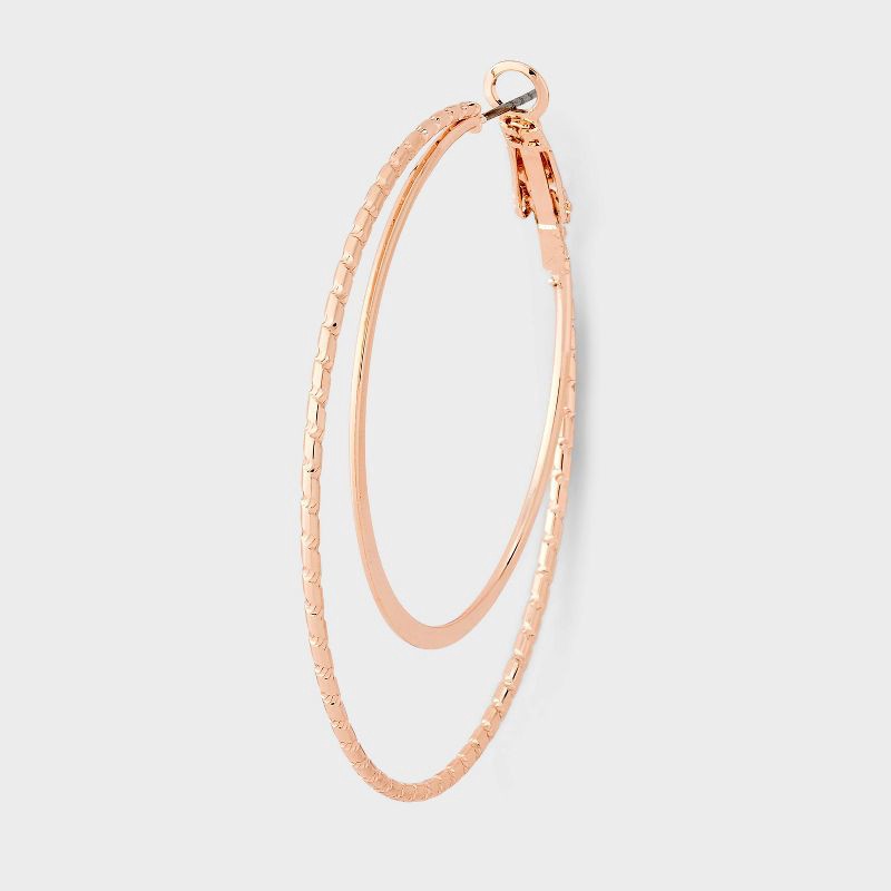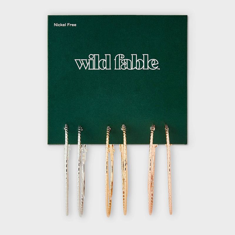 Smooth and textured wire hoop trio earring set from Wild Fable™ features mixed metal finishes. Includes three pairs of wire hoops in double-hoop styles. Nickel-free designs suit all skin types, and cl…