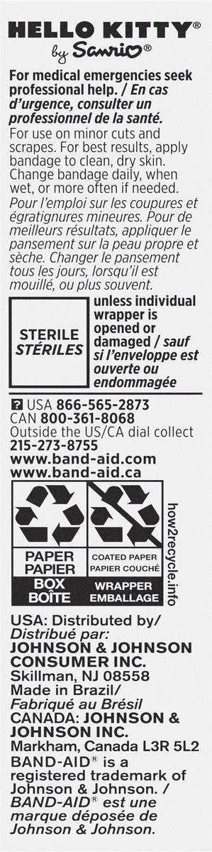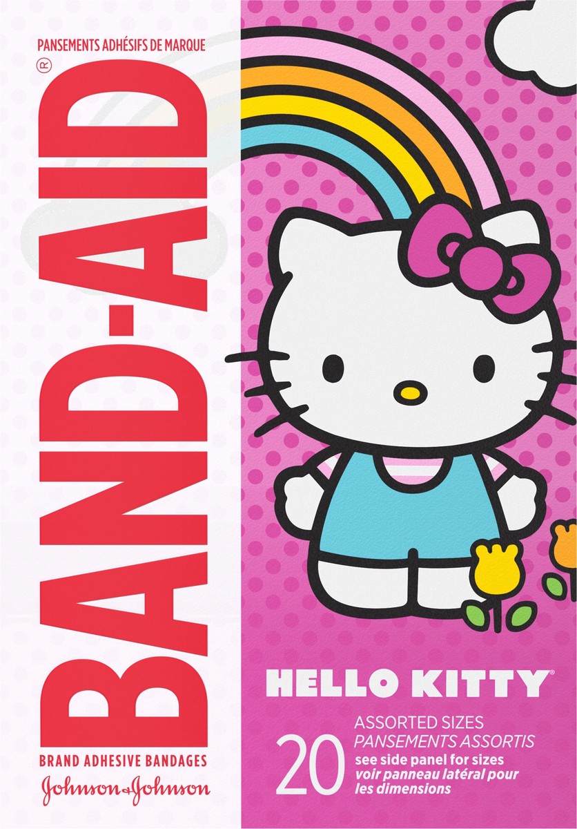 Band-Aid Brand Adhesive Bandages for kids, featuring Hello Kitty designs, cover and protect minor cuts and scrapes with fun graphics from Hello Kitty. These sterile bandages come in assorted sizes in …