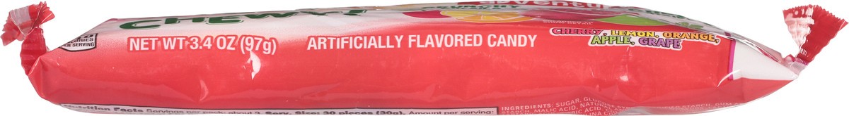 Cherry, lemon, orange, apple, grape. Artificially flavored candy. 110 calories per serving. New. Colors from natural sources. Chewy! Crunchy outside. Chewy inside. Shake size. 5 Delicious Fruity Flavo…