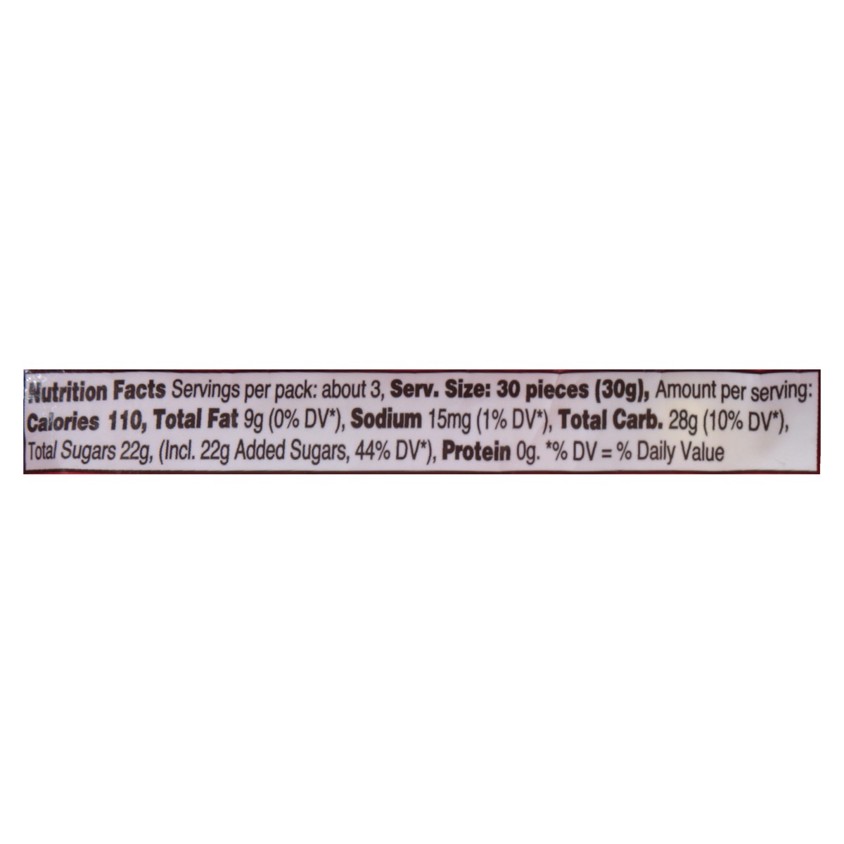 Sugar, Glucose Syrup, Modified Starch, Gum Arabic, Rice Starch, Malic Acid, Natural and Artificial Flavors, Lactic Acid, Tartaric Acid, Citric Acid, Colors (Spirulina Extract, Beet Red, Beta-Carotene,…