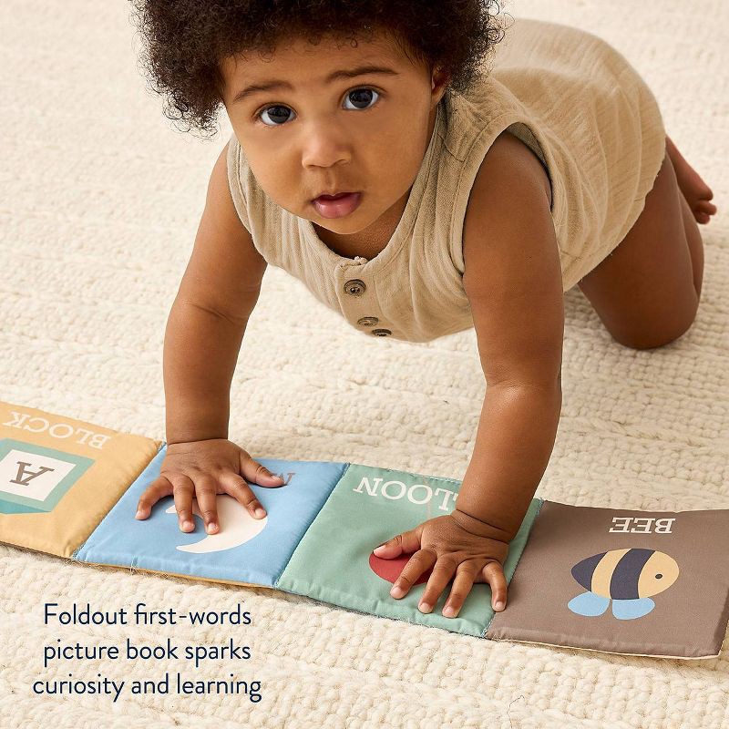 - A fold-out book of first words and animals so baby can flex those reading skills