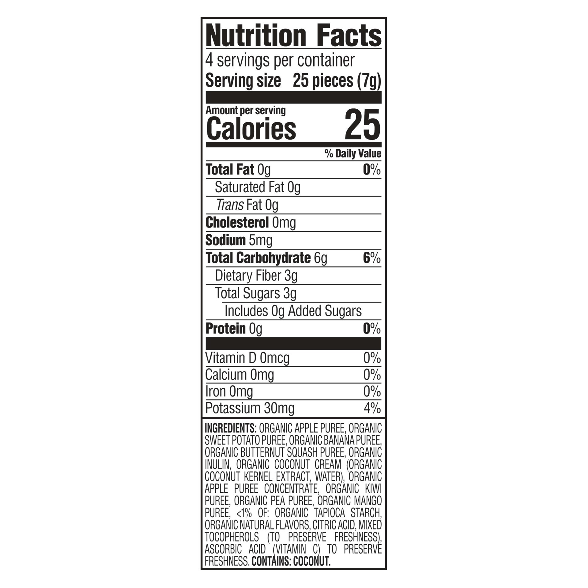 Organic Apple Puree, Organic Sweet Potato Puree, Organic Banana Puree, Organic Butternut Squash Puree, Organic Inulin, Organic Coconut Cream (Organic Coconut Kernel Extract, Water), Organic Apple Pure…