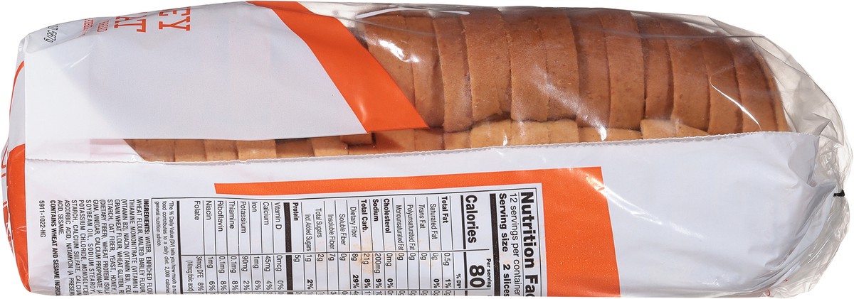 Excellent source of fiber per serving. Good source of calcium per serving. No high fructose corn syrup. Reduced sodium. Good source of vitamin D. At least 25% less sodium than regular Whole Grain brea…