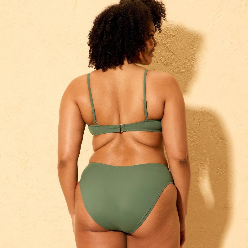 Women's Side Shirred Mid-Rise Scoop High Leg Full Coverage Bikini Bottom - Shade & Shore™ Green XS