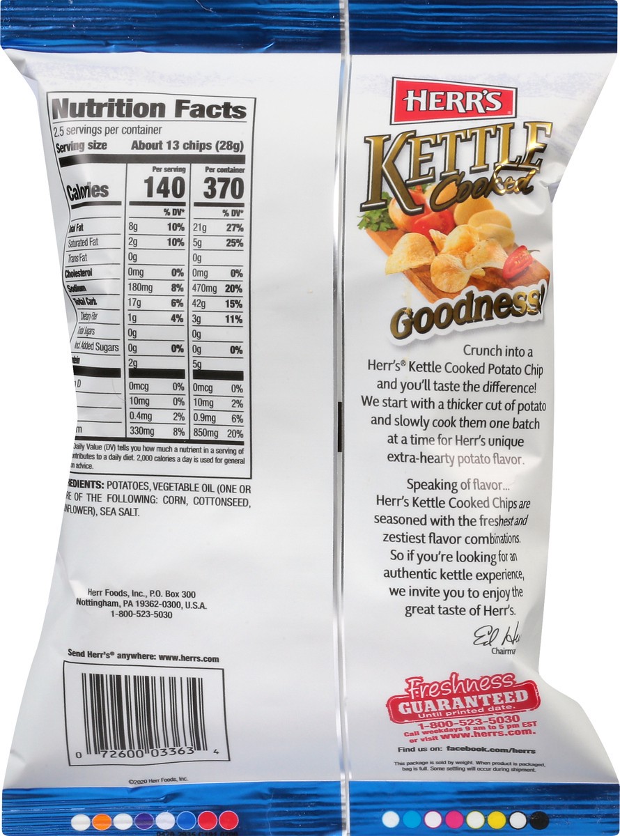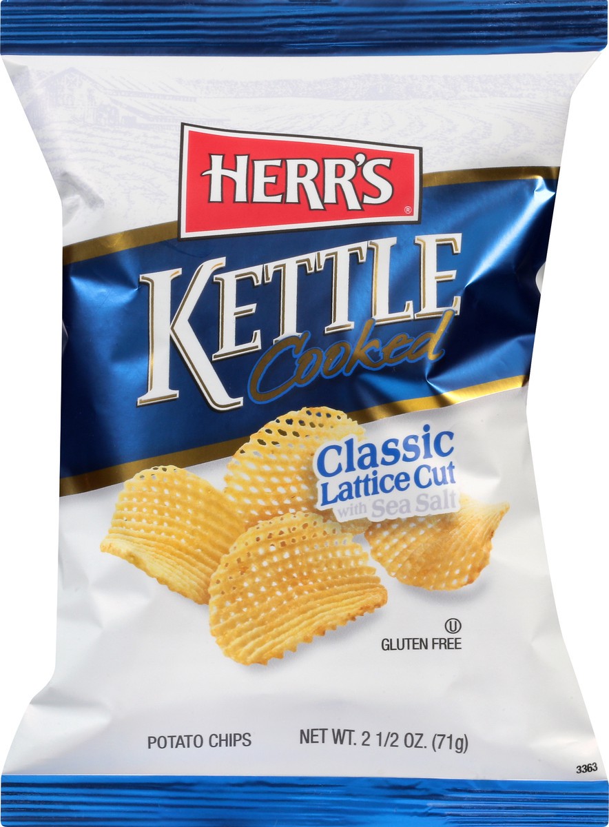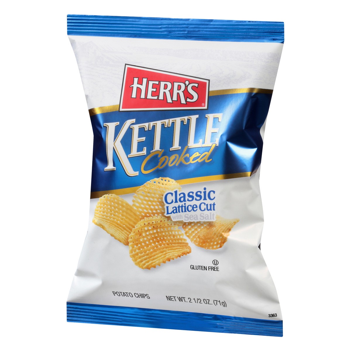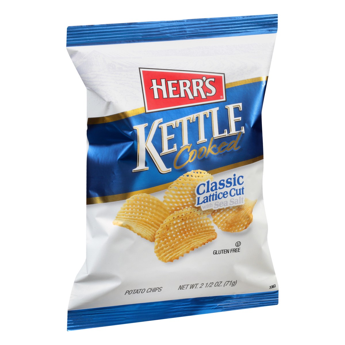 Gluten free. Goodness! Crunch into a Herr's kettle cooked potato chip and you'll taste the difference! We start with a thicker cut of potato and slowly cook them one batch at a time for Herr's unique …