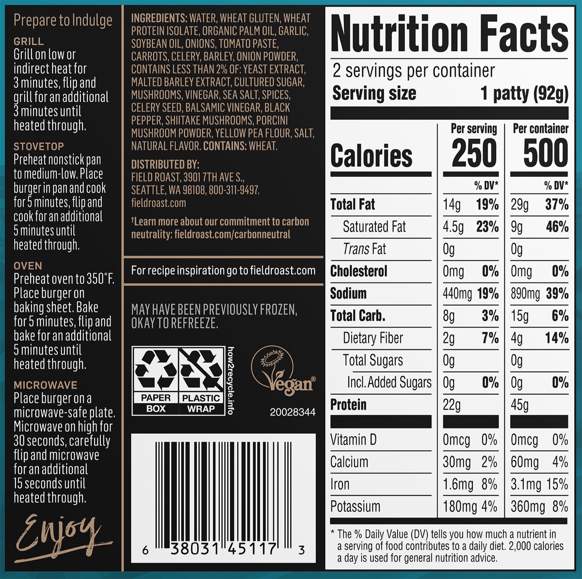 Delivering deep, savory flavor, the Field Roast Chef''s Signature Plant-Based Burger is not your ordinary veggie burger. These plant-based patties are handcrafted with garlic, fresh carrots, and onion…