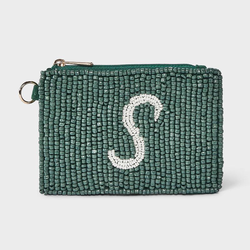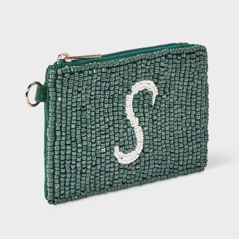 Beaded Monogram Letter S Pouch - A New Day™ Green/S