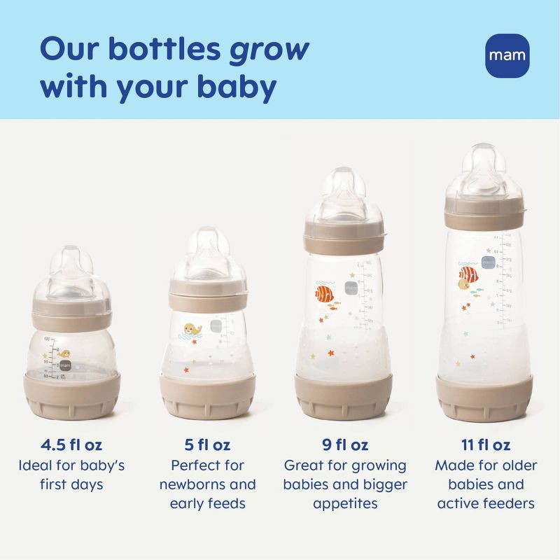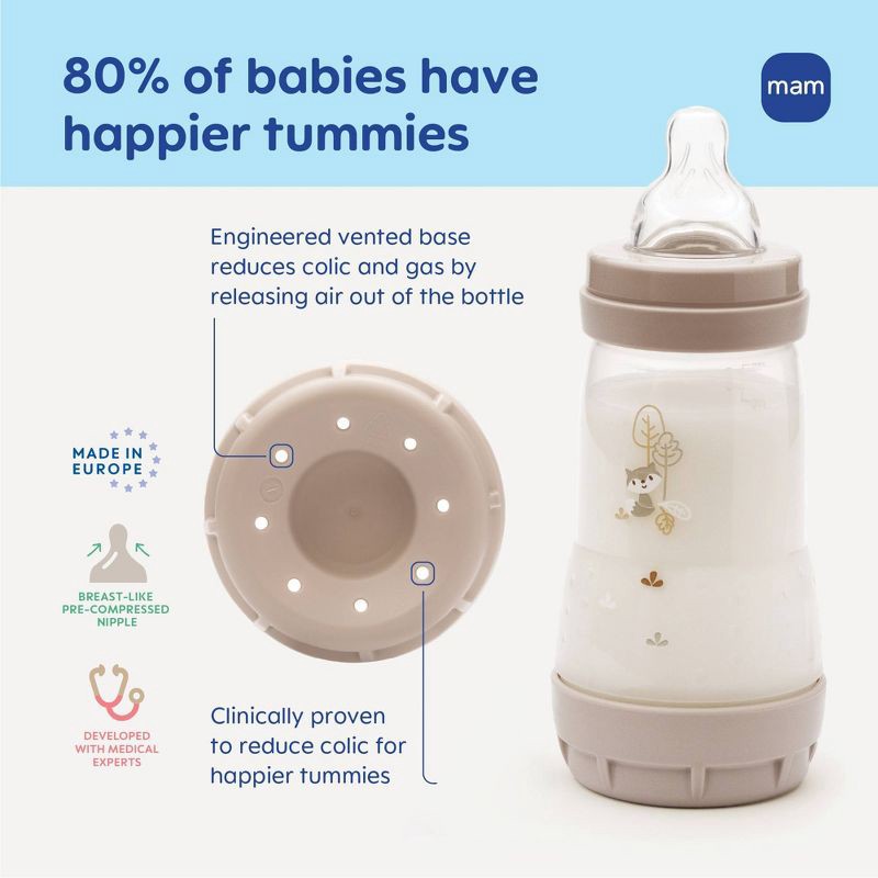 - PRODUCT DETAILS - MAM Easy Start Anti Colic Baby Bottles 9 oz (3-Pack), 3 Baby Bottles with 3 Medium Flow Silicone Nipple, Newborn Essentials, Unisex