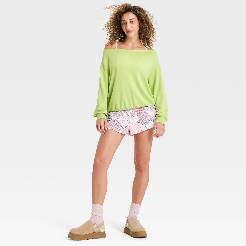 Women's Off-The-Shoulder PeachySoft Fleece Crewneck Sweatshirt - Wild Fable™ Green XXS
