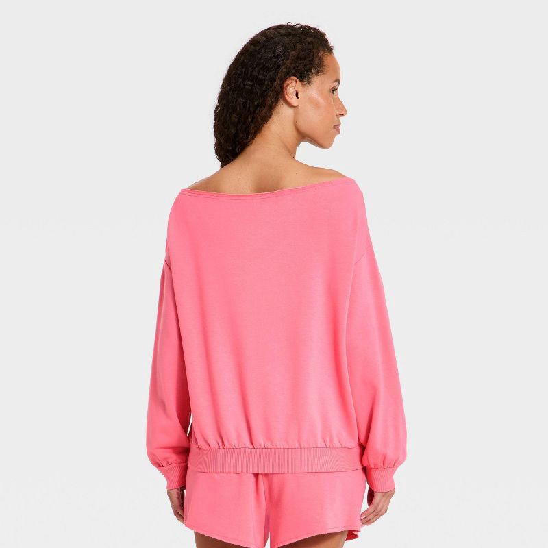 Women's Off-The-Shoulder PeachySoft Fleece Crewneck Sweatshirt - Wild Fable™ Pink M