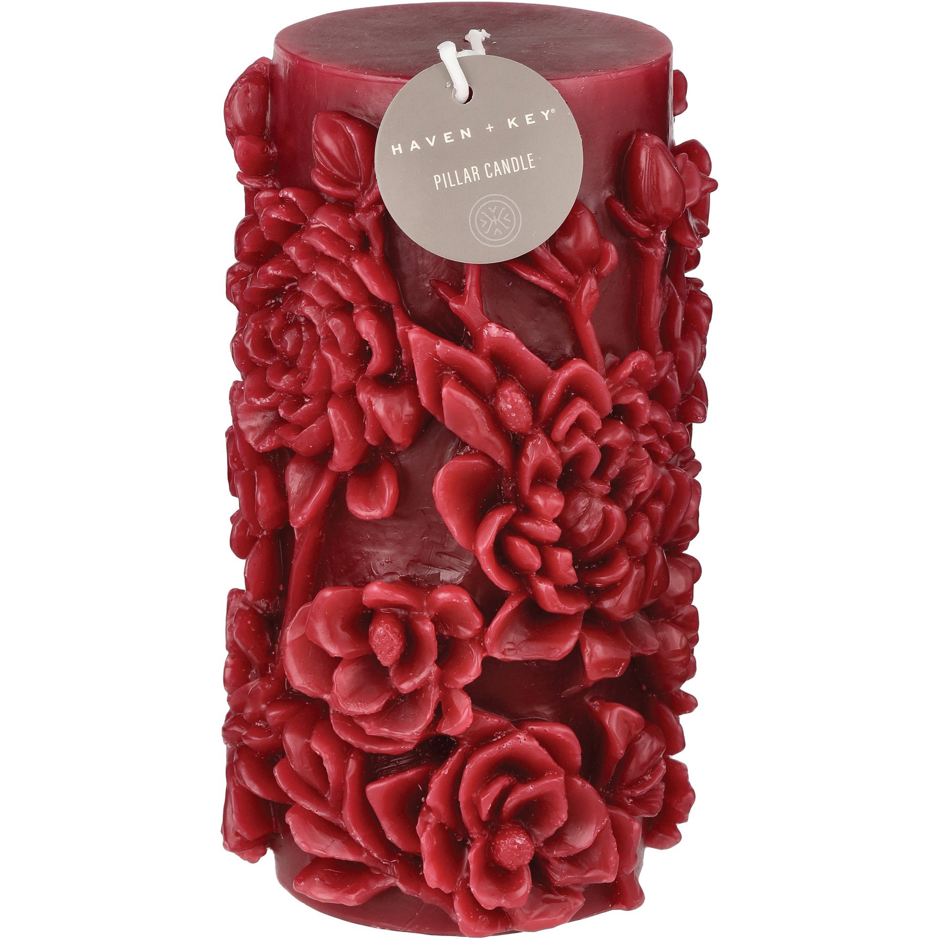Enhance your home decor with the exquisite Haven + Key Floral Sculpted Pillar Candle. Standing at 7.1 inches tall, this pillar candle features an intricate figural floral design that adds a touch of e…