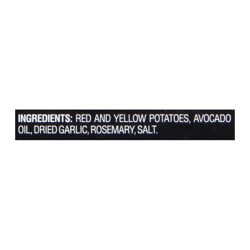 Red and Yellow Potatoes, Avocado Oil, Dried Garlic, Rosemary, Salt.