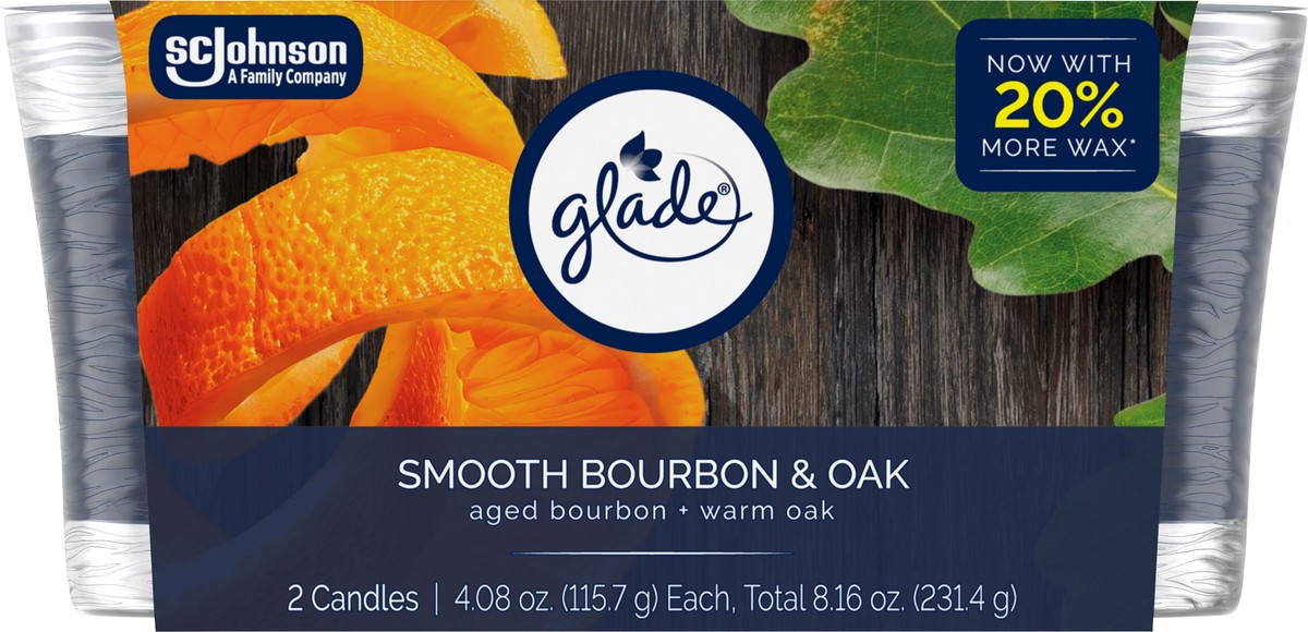 Glade Single Wick Candles, Smooth Bourbon & Oak, 8.16 oz, 2 Count