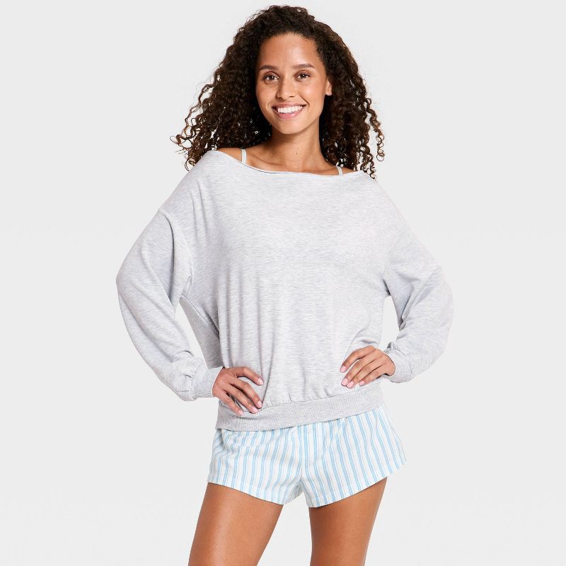 Women's Off-The-Shoulder PeachySoft Fleece Crewneck Sweatshirt - Wild Fable™ Gray M