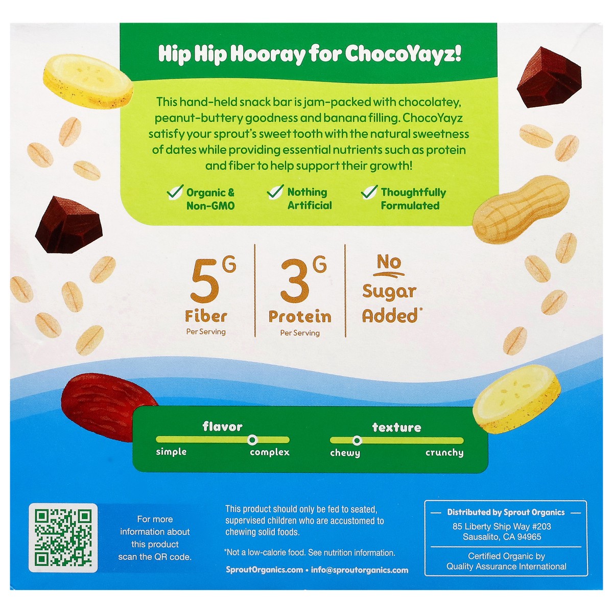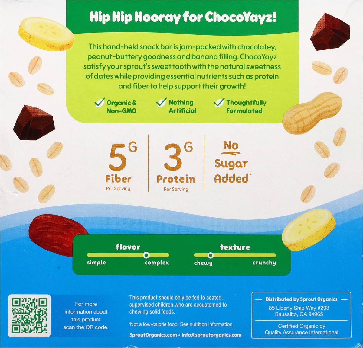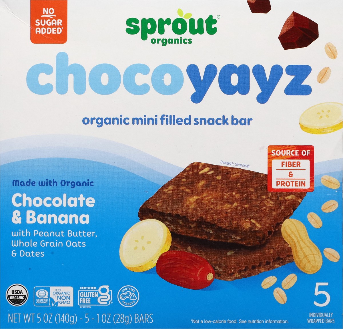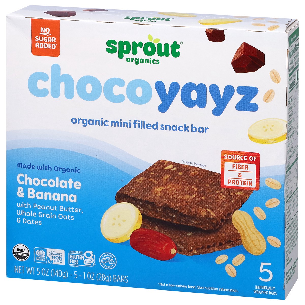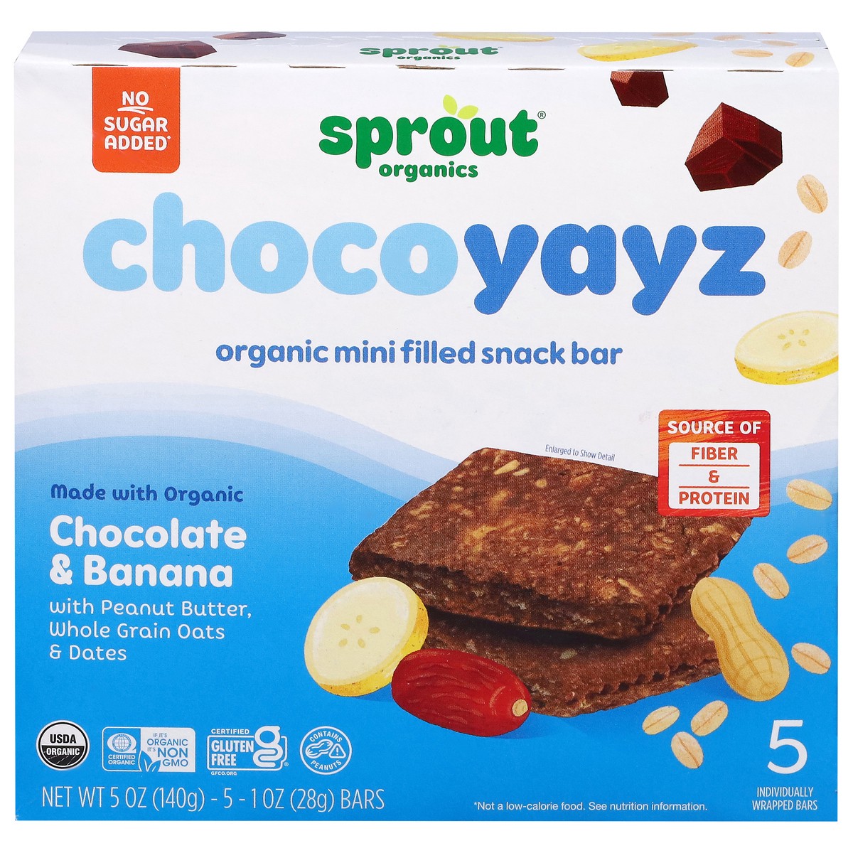 The hand-held snack bar is jam-packed with chocolatey, peanut-buttery goodness and banana filling. ChocoYayz taste like a treat while sneaking in fiber and protein without and added sugar!