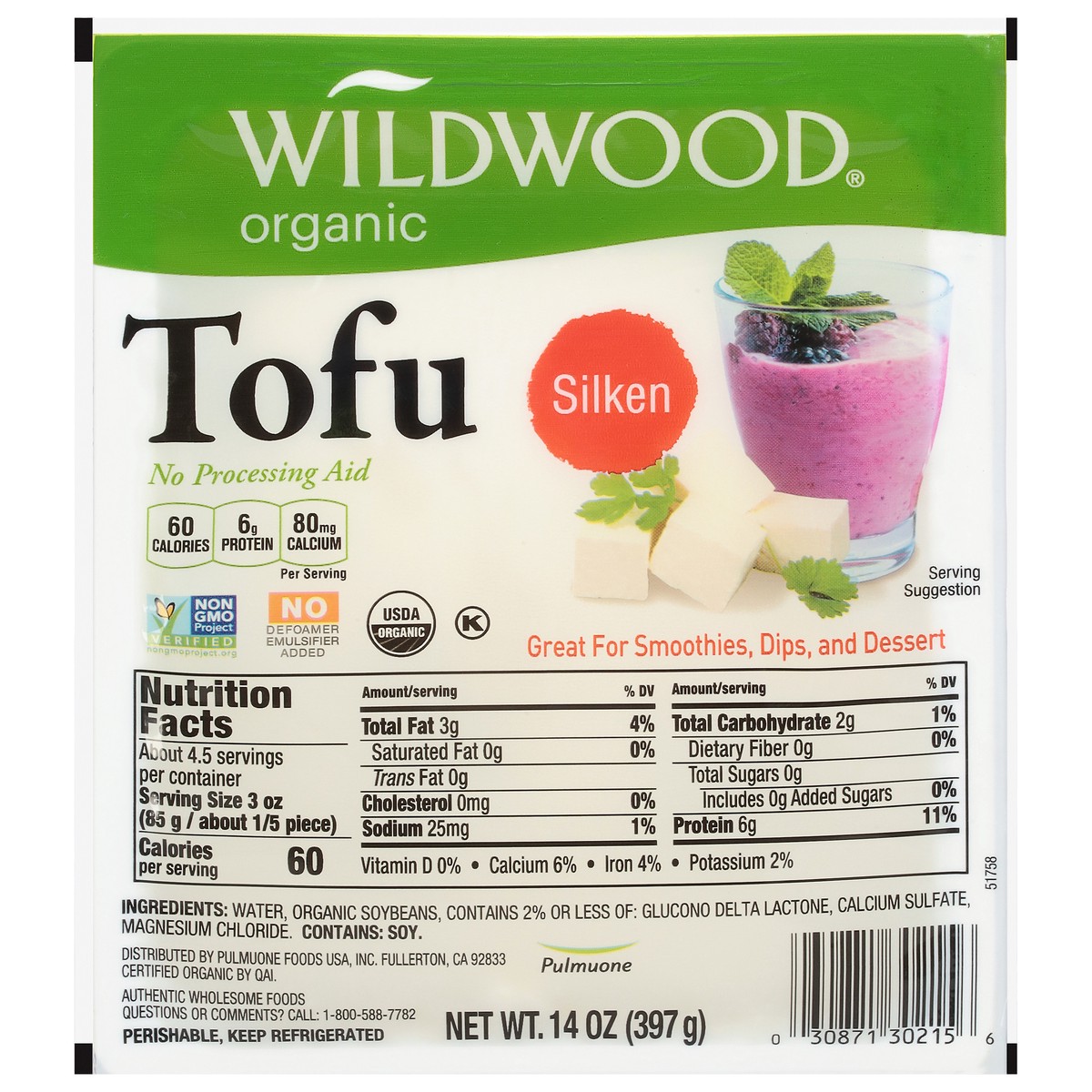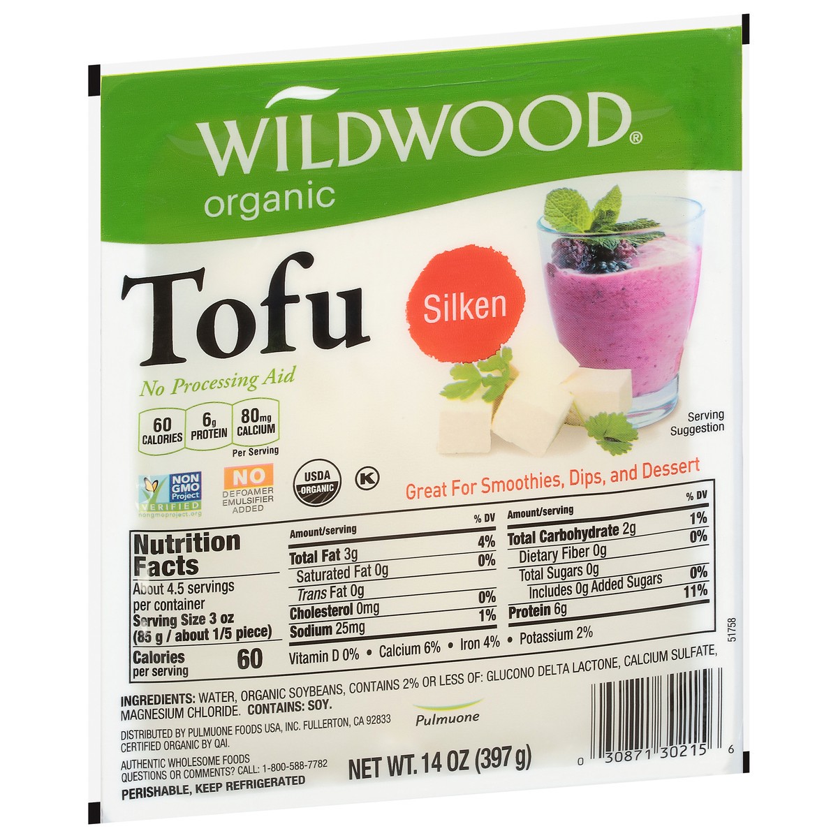 Wildwood Organic Sprouted Soybean Water Packed Silken Tofu