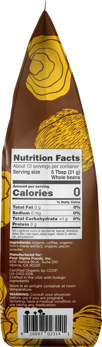 Organic Coffee, Organic Lion''s Mane Extract, Organic Yacon Powder.