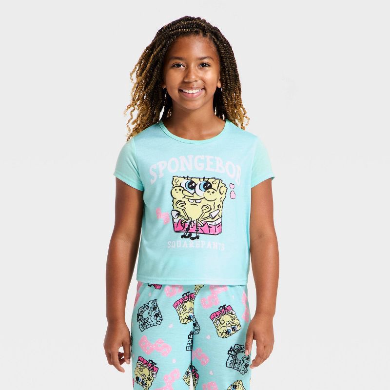 Girls' 2pc SpongeBob SquarePants T-Shirt and Pants Pajama Set - Turqouise Blue XS